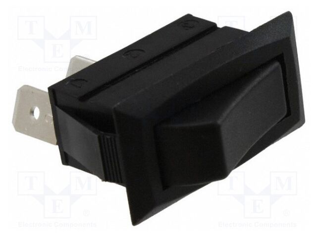 ROCKER; SPST; ON-OFF; Rcont max: 100mΩ; Rinsul min: 20MΩ; on panel