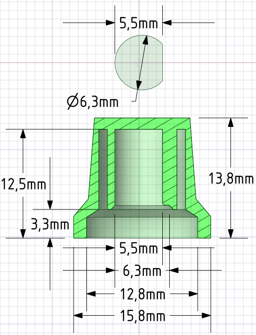 Knob; miniature,with pointer; Øshaft: 6.2mm; black; Ø: 15.8mm