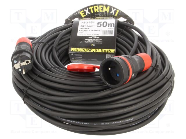 Extension lead; 3x1.5mm2; Sockets: 1; rubber; black; 50m; 16A